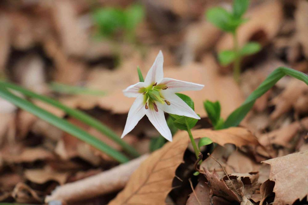 植物園の林の中で、この白い花がスミレと一緒にいっぱい咲いていました。