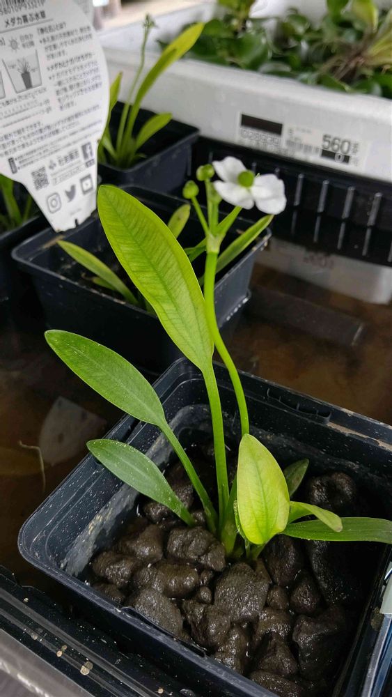 カインズに買い物に行くと、すでに花が咲いているナガバオモダカがありました(1枚目)