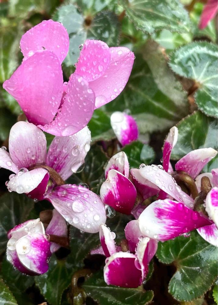 おはようございます😊雷雨が降ってますね☔⚡せっかくのお花観察が軒下からで残念でたまりません😅しばしの間、園芸作業お休みですね🌸ミニシクラメンちゃん可愛い💓色んな品種が増えてミニちゃん揃えるのも楽しいかも☺️