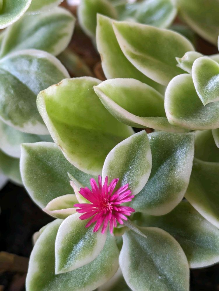 冬の間、窓辺で過ごしていた鉢植えに花が咲いてます。