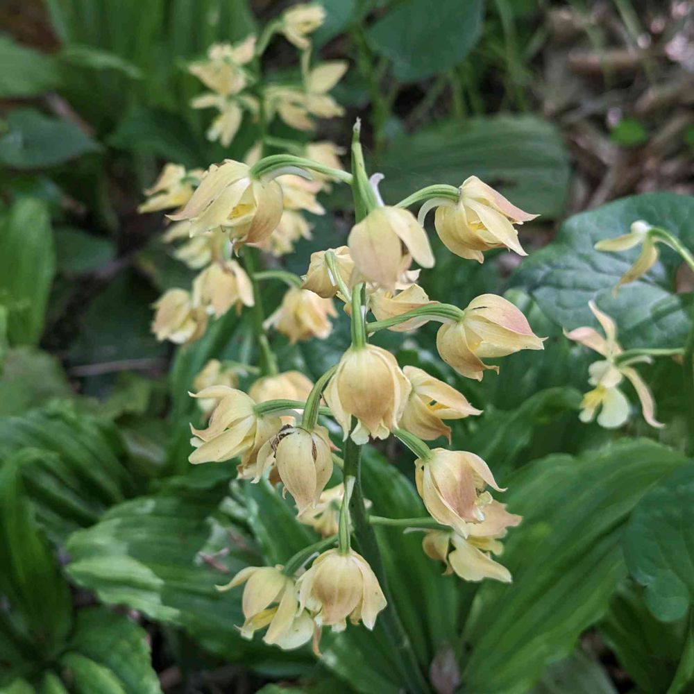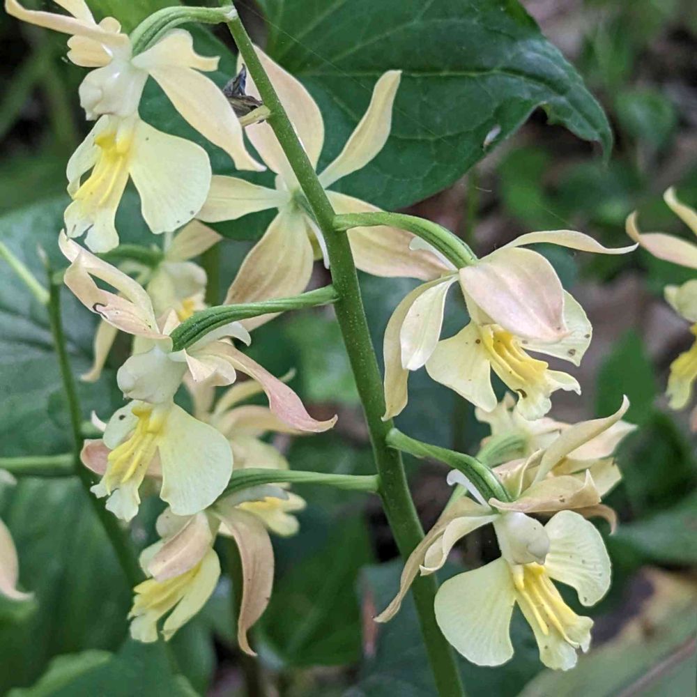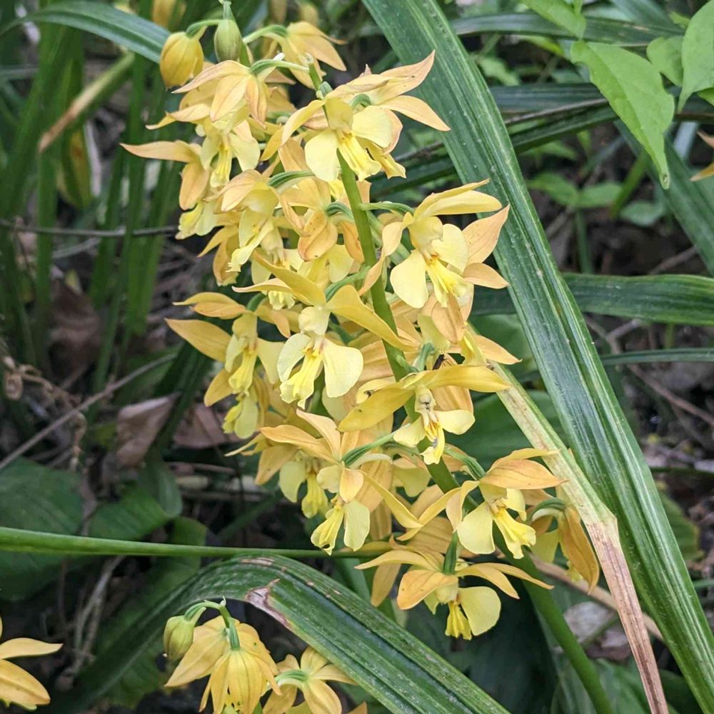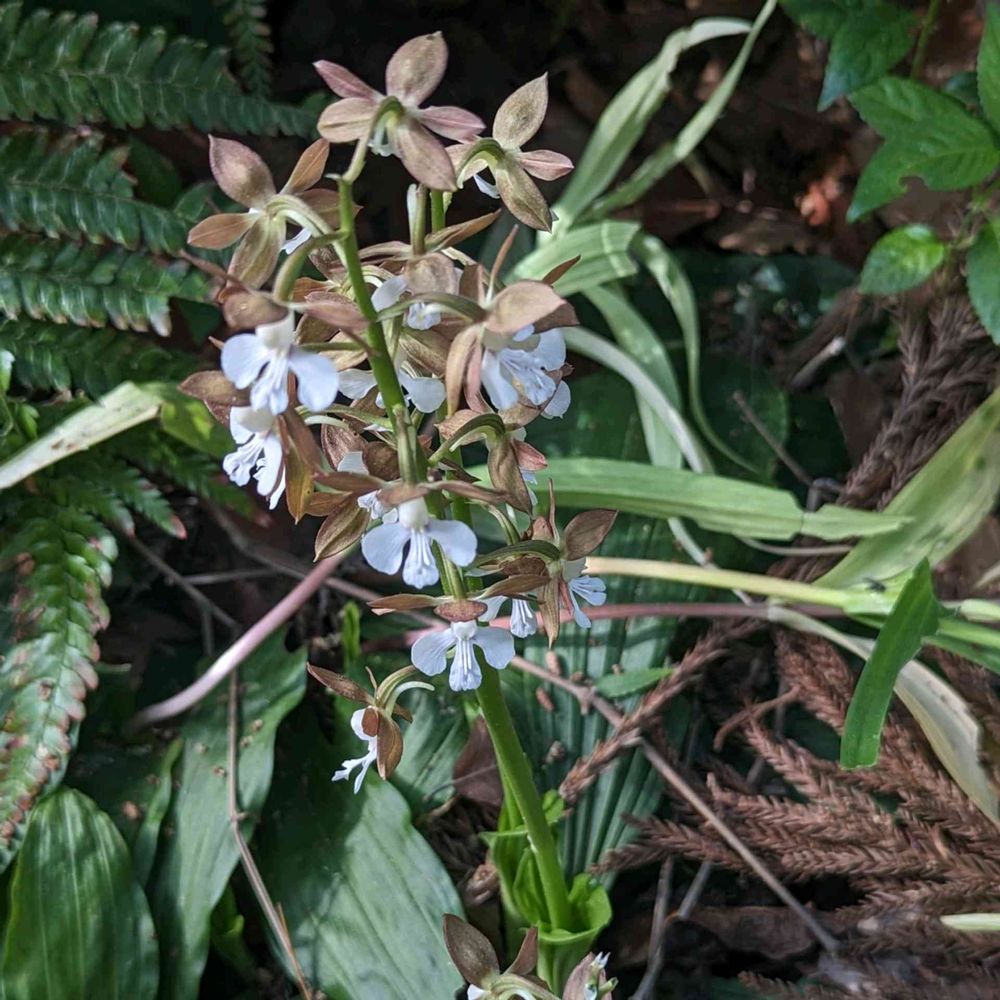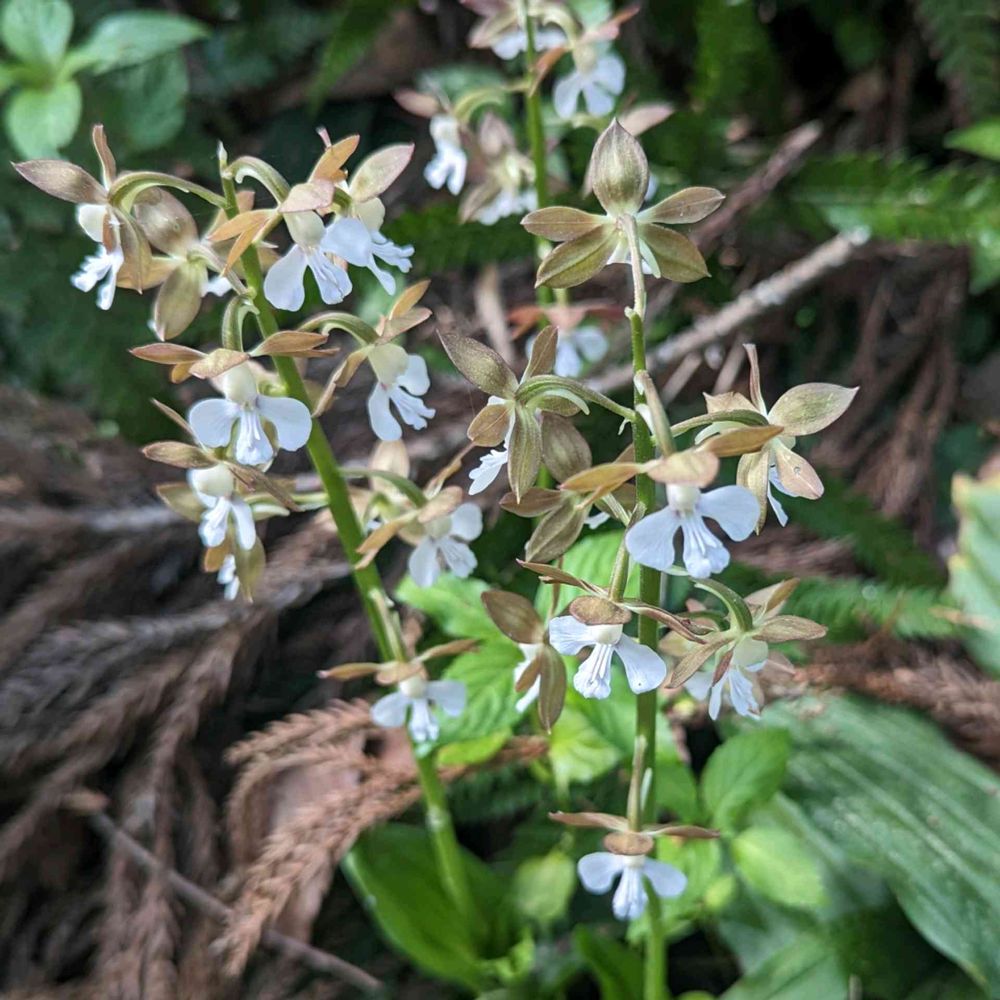 エビネの名前の由来は、地下に連なっている茎と、そこから生えている根の様子がまるでエビの頭を指でつまんで持ち上げたように見えるところからということです🤚