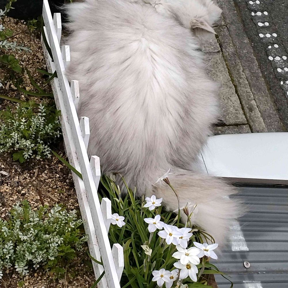 ゴージャスな猫ちゃんと、可憐なハナニラさん♡♡♡ 絵になりますね~~💞🎶😊✌