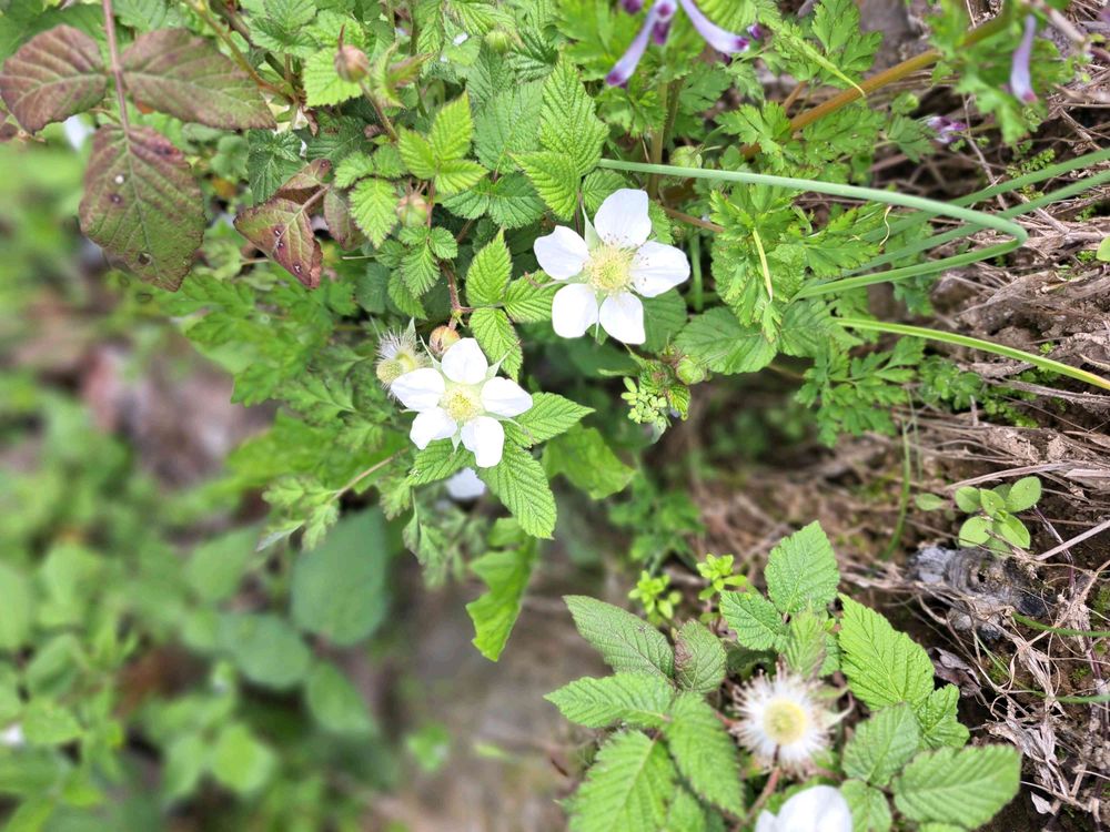 通勤途中の山道で、草苺の花が咲いていました。今年も眺めることが出来て、ほっとしました。可憐な雰囲気です。