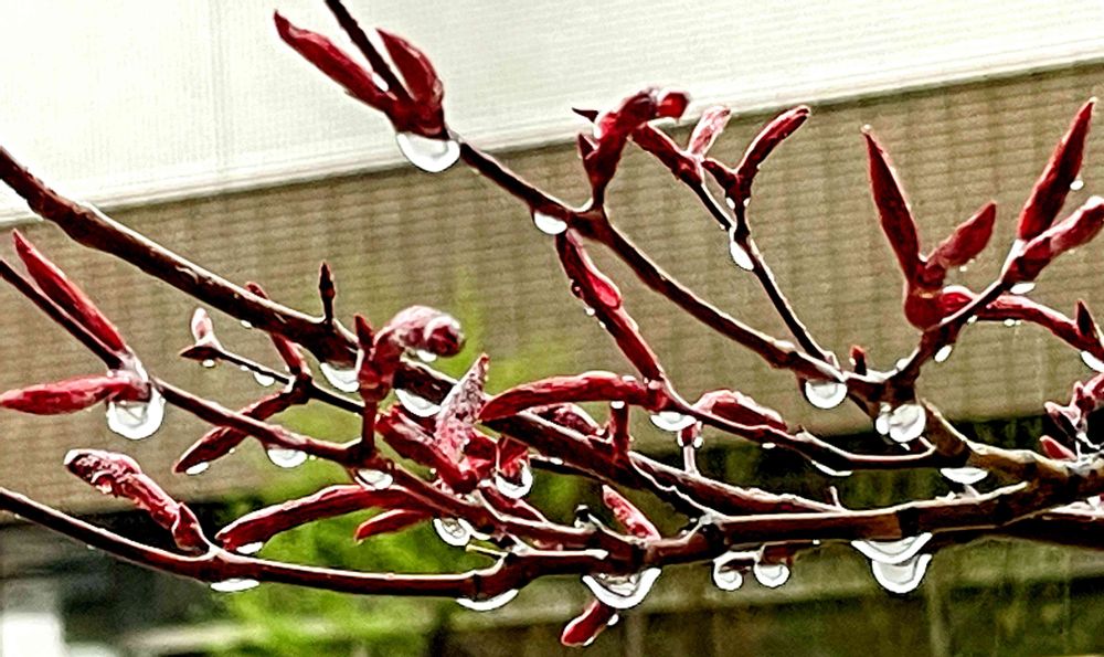 m&oさんの職場の植栽,赤紅葉の新芽,大雨で雫がの投稿画像