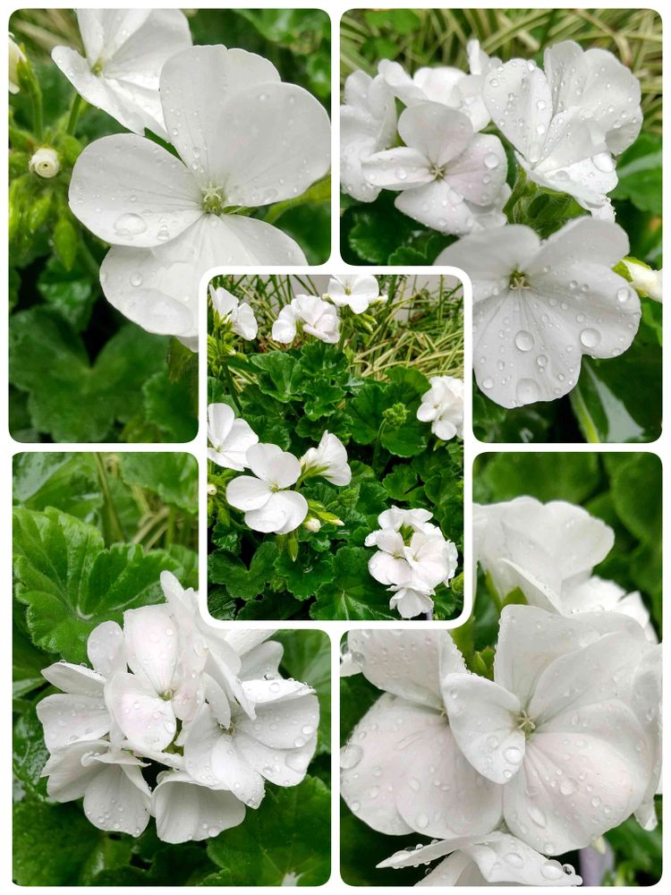 予報よりも早く降り出して 白いゼラニウムのお花にも雨粒が💧