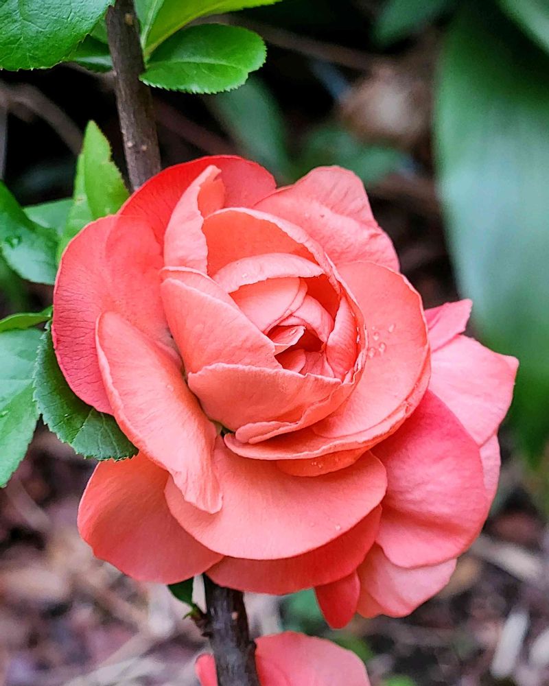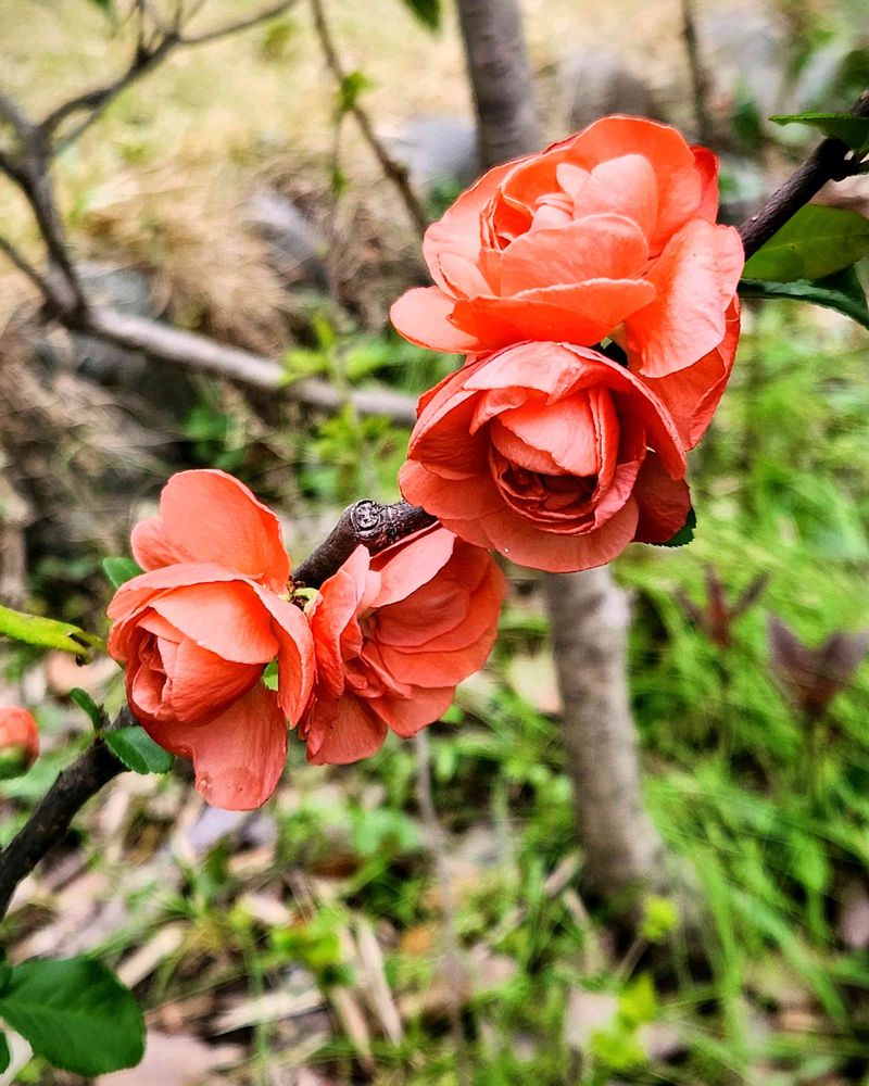 ボケはバラ科と知っていましたが、この柔らかな咲き方は初めて見ました👀