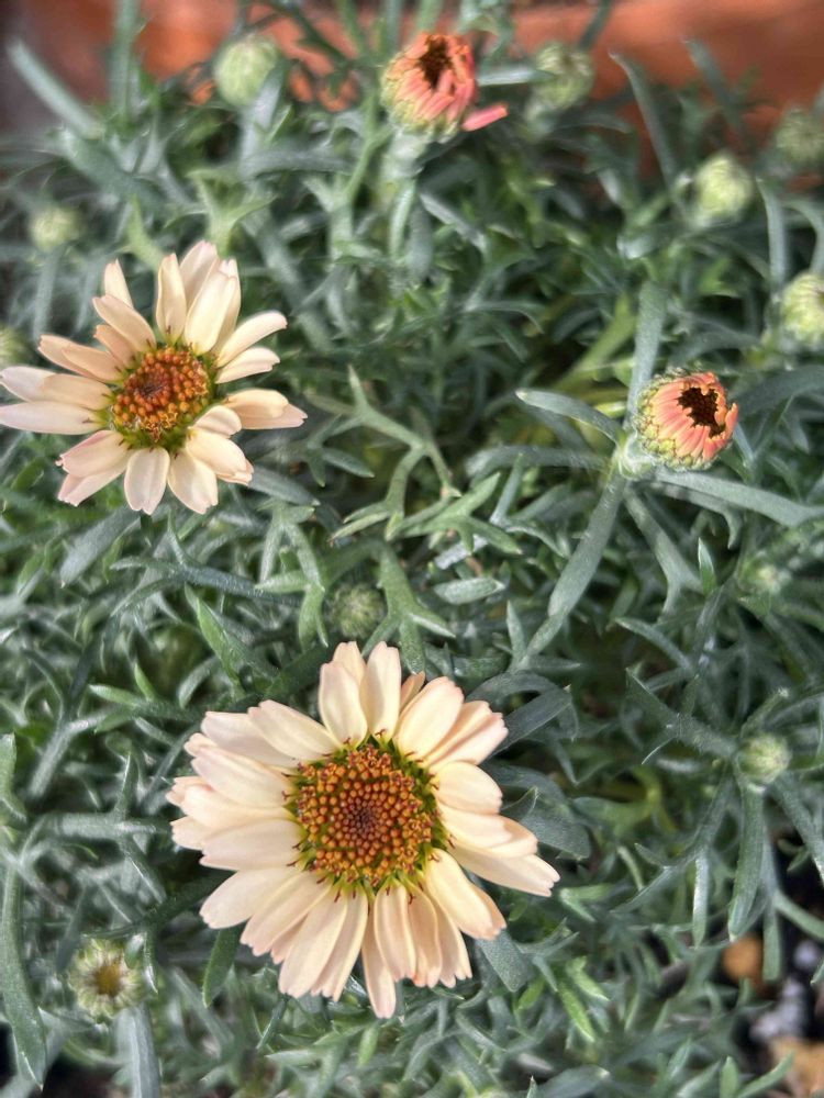 先月 もう見切り品⁉️で 少し萎れ気味で 株の中の葉が茶色になってたけど 買ってきて 植え替えて…開花してくれました😊