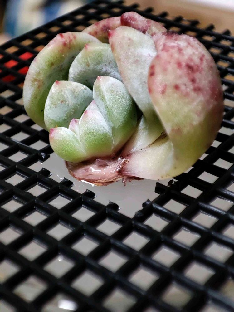 3月中旬に届いたカット苗、ブヨってる?と怪しみつつブヨ葉を取り除き発根を待っていたが…世にいう赤腐れ病?!茎も葉も真っ赤…😱