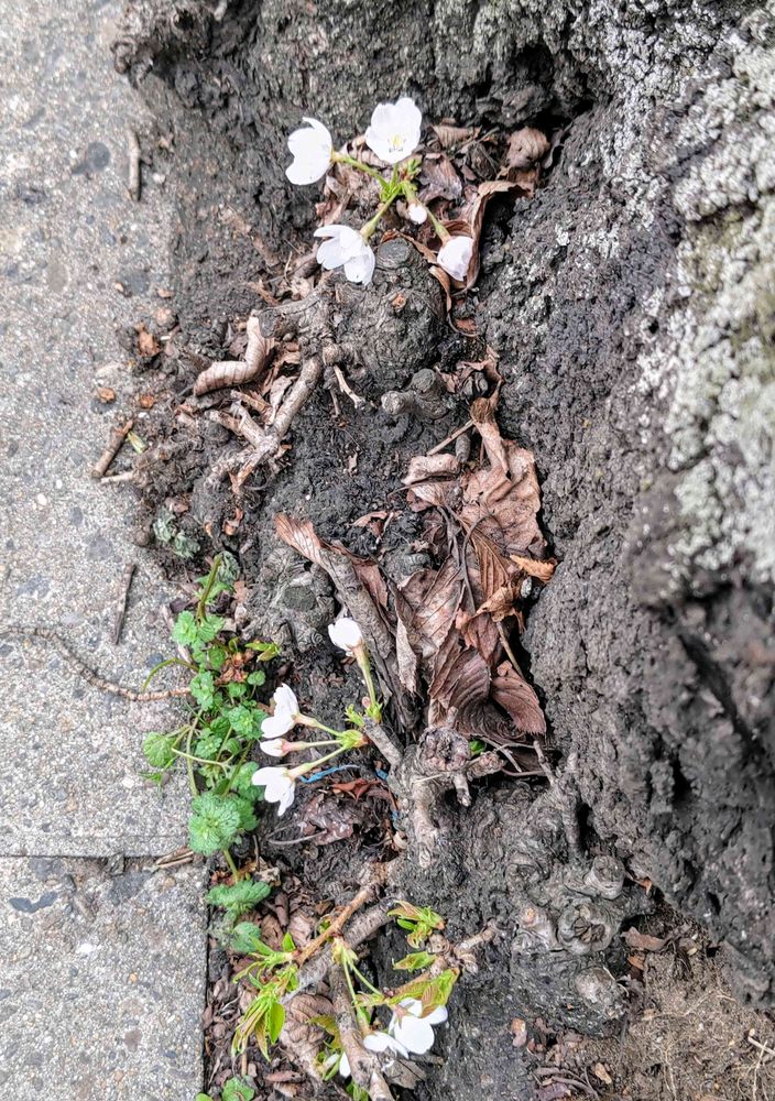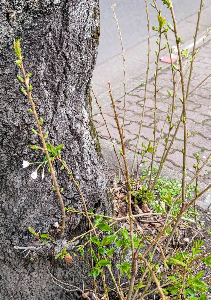 こちらの桜ですね✨ヒコバエ、すごい数!