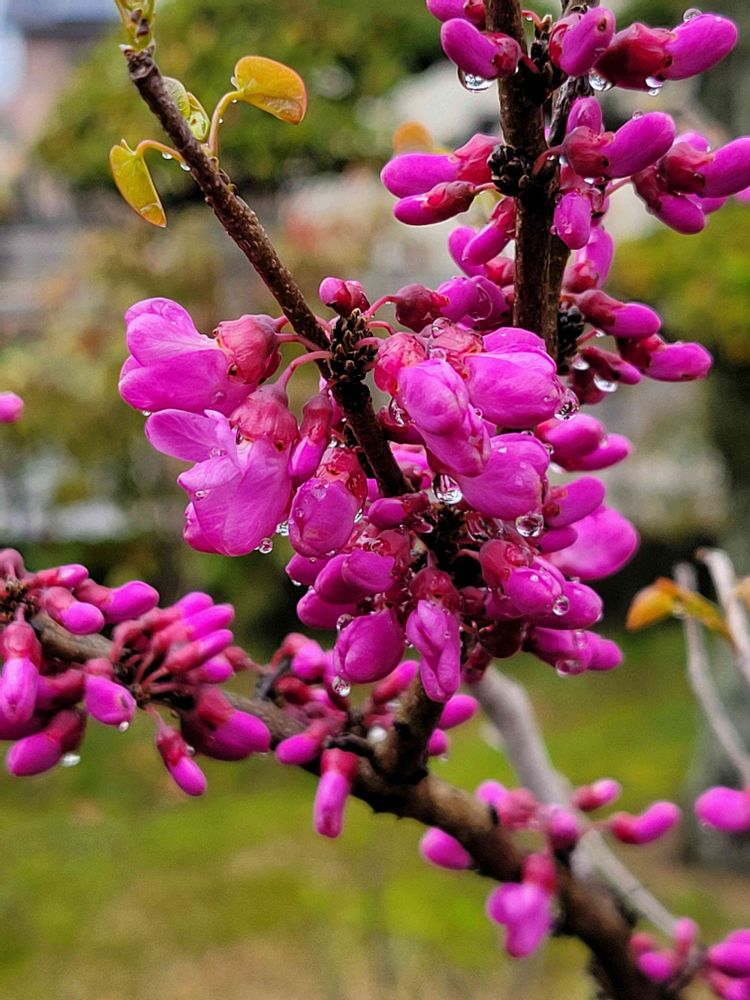 庭のハナズオウ(花蘇芳)が去年とほぼ同じ時期に咲き始めました。