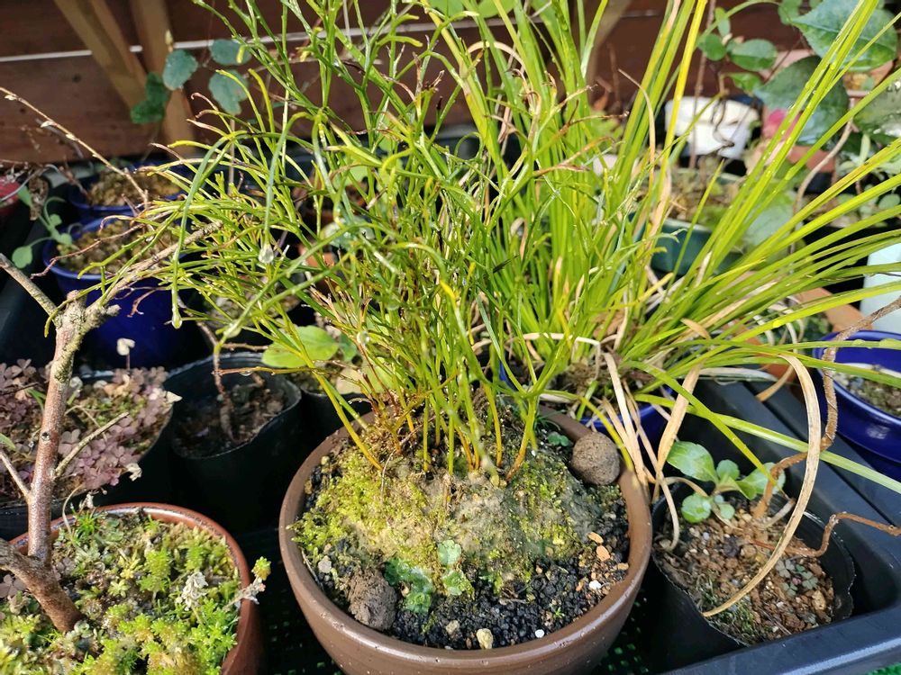 ②岩檜葉(イワヒバ 左)獅子葉 一つ葉(シシバ ヒトツバ 右)