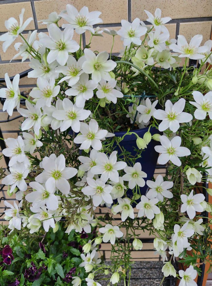 クレマチスの勢いはすごいですね😄我が家のクレマチス達もあっというまに枠のてっぺんまで登って、捕まるところがないのでお互いの蔓が巻き付きながら登っています。2月に蔓を巻き直して一番下にぐるぐる巻きで下げていたのですが😅😅😅