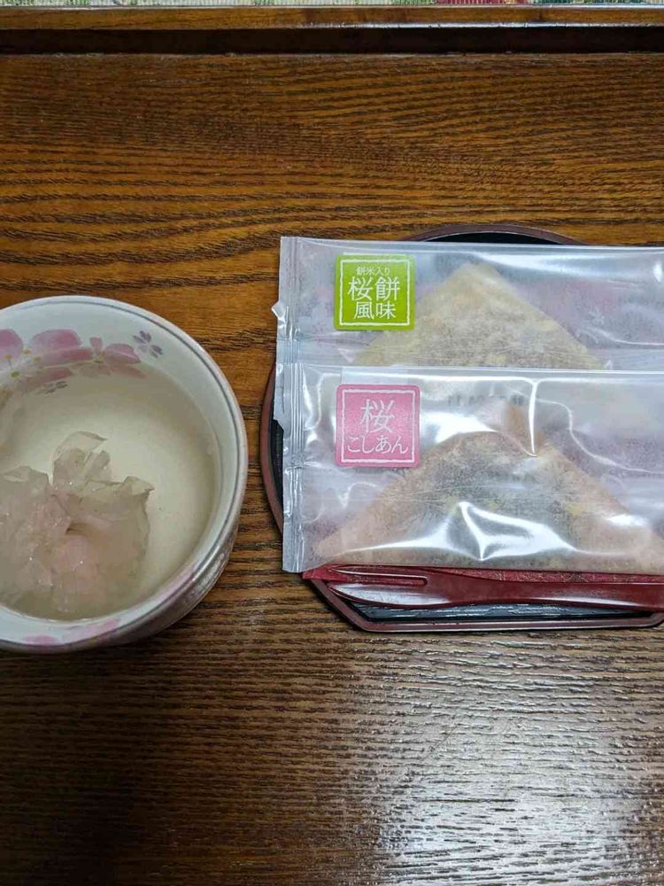 塩漬けした桜の花🌸のお茶と桜こしあんの生八つ橋を堪能!!