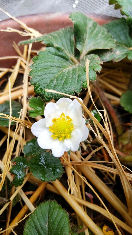 🍓いちごの花 咲きました。😃☺️💮