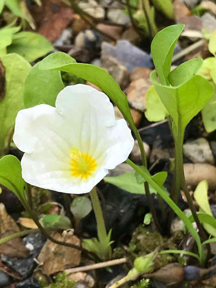 地面からちょこっと茎を出して銀盃草が咲いています