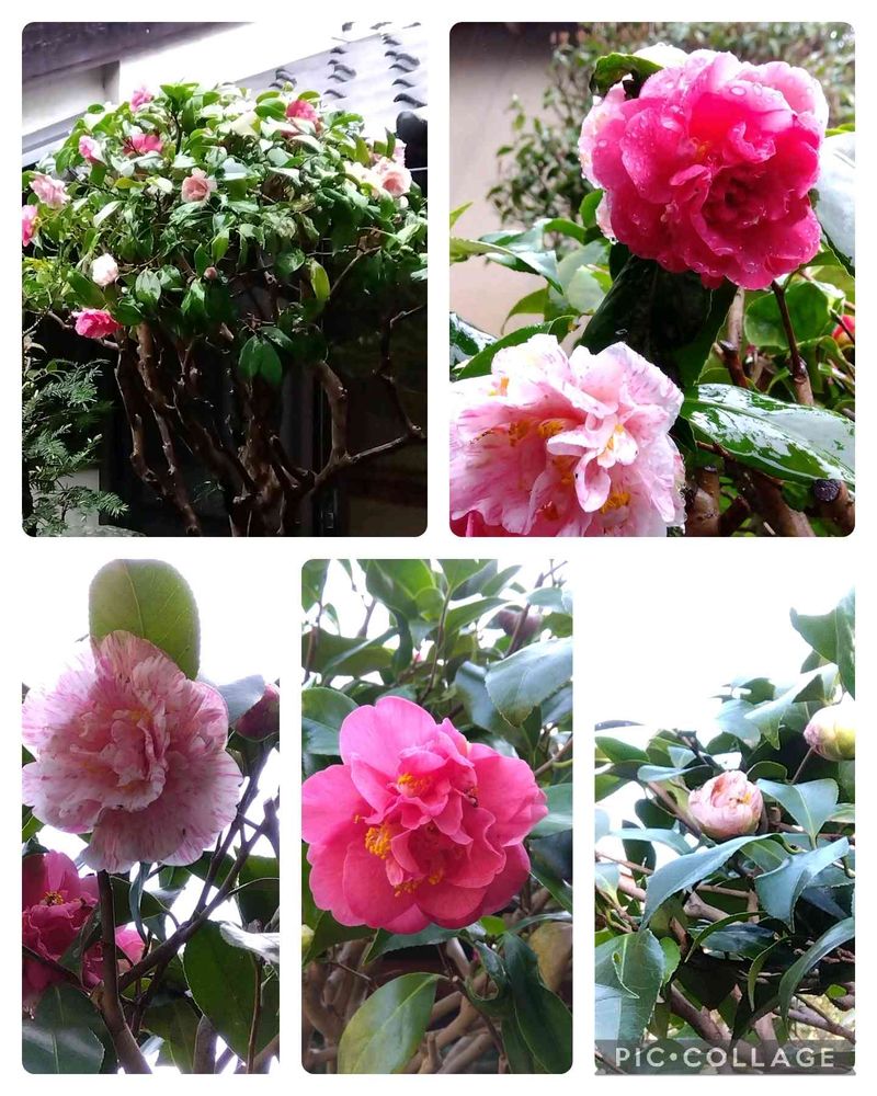 赤とピンクの悦牡丹椿、1本の木からこんな感じです。💗