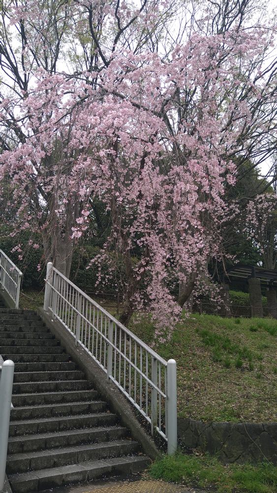 ❶❷❸枝垂れ桜🌸も終わりになりそうなので撮ってきました、大きな木で圧倒されました、つくづく青空🟦だったらなぁと…