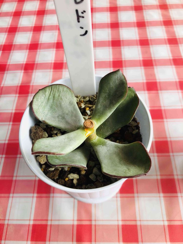 先月、徒長気味のコチレドン(福娘と思います)を上部、中間部、株元と3っつに胴切りしました