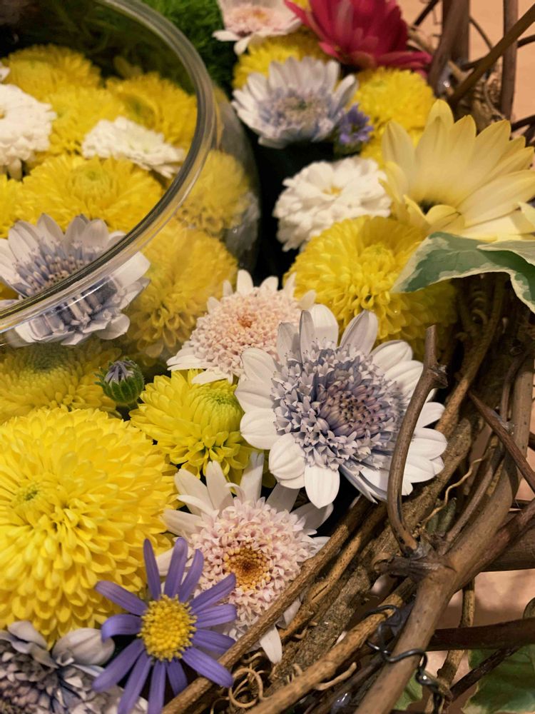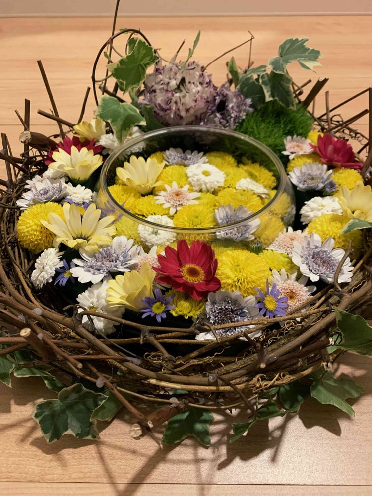 アレンジメント教室で作ったポンポンマムのテーブルリースをバージョンアップ🏵⸜( ॑꒳ ॑ * )⸝🏵