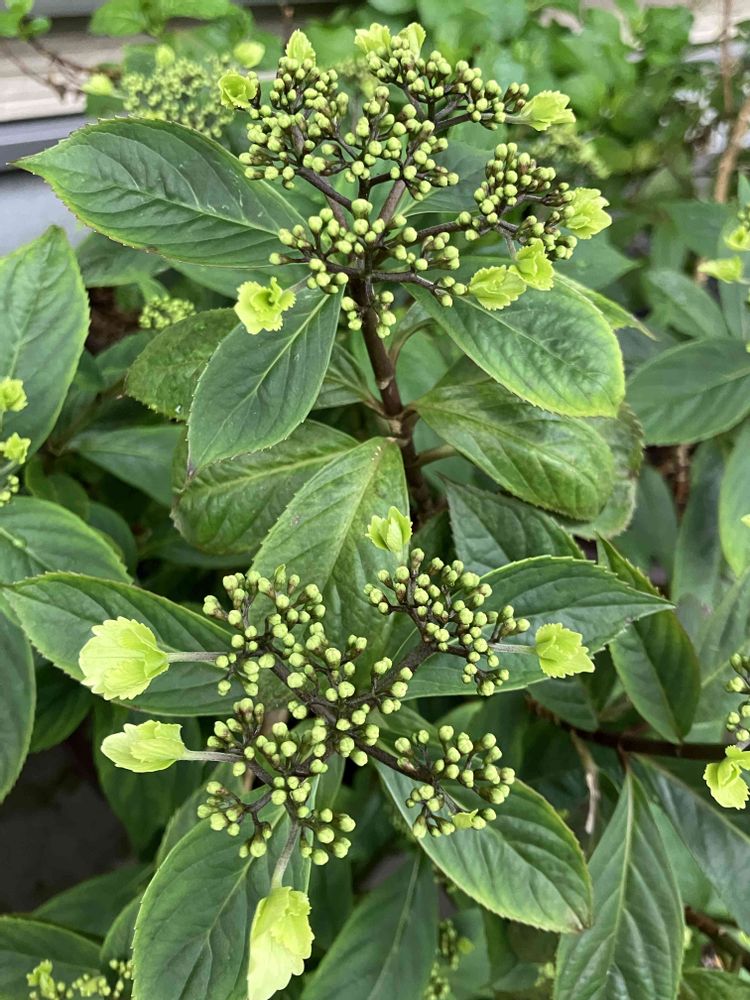 草抜きしてる時にお尻がアジサイの芽に当たってポロ😱あるあるで〜す💦