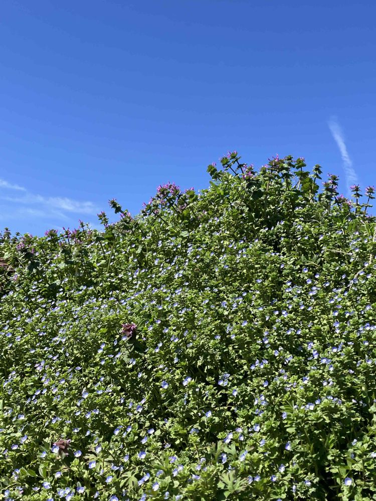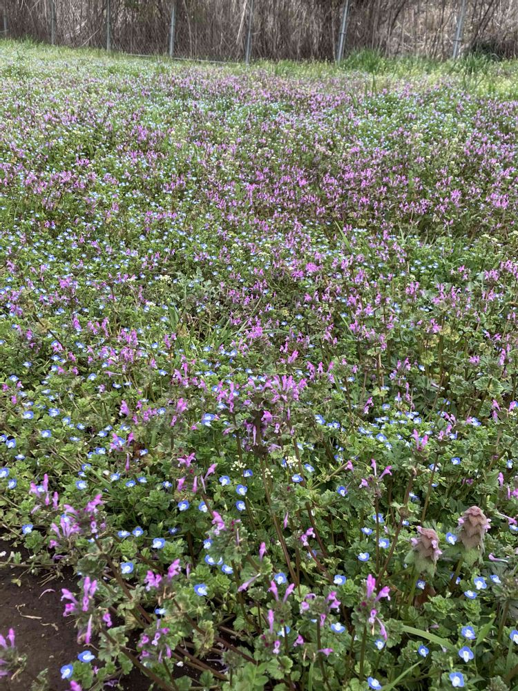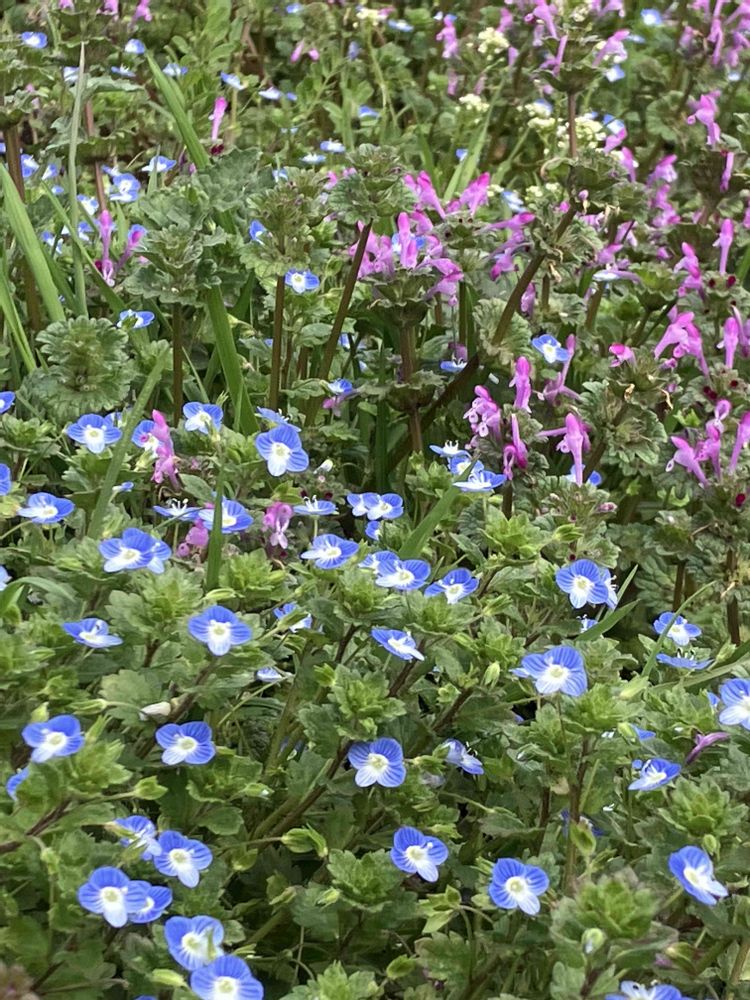 水色のオオイヌノフグリとホトケノザが見事に群生してとても綺麗ですね〜🥰
