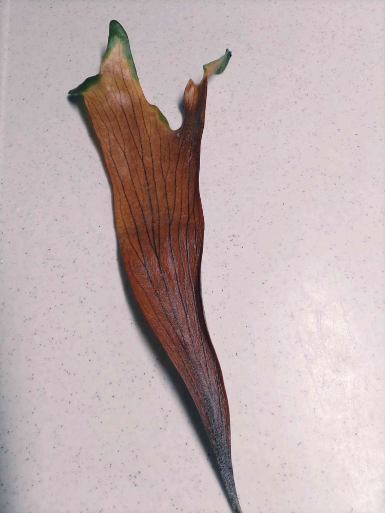 お店で買ったビカクシダは なかなか大きく育ちません🤔 枯れないけど 板付けの板にもよるのかなぁ~ この葉の葉脈の線が綺麗から 押し花じゃなく押し葉にして😆😁