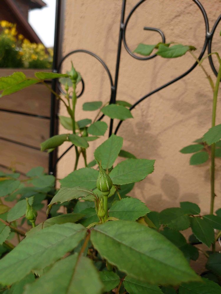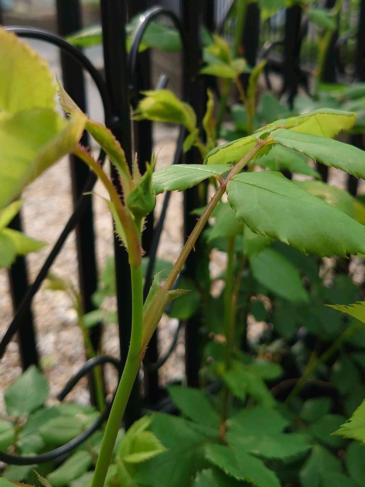 バラの蕾が出てきました、今年はERシャーロット嬢が早く咲きそう🌹