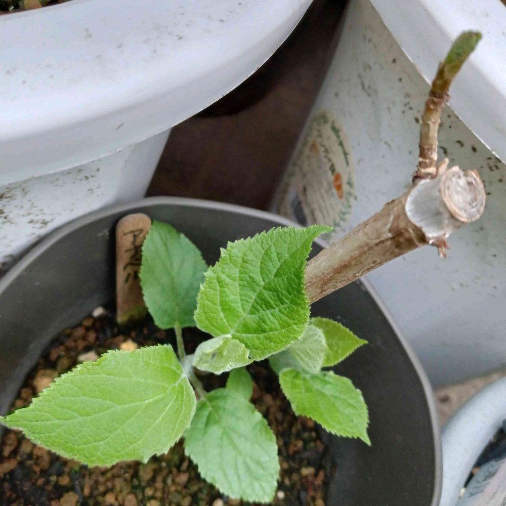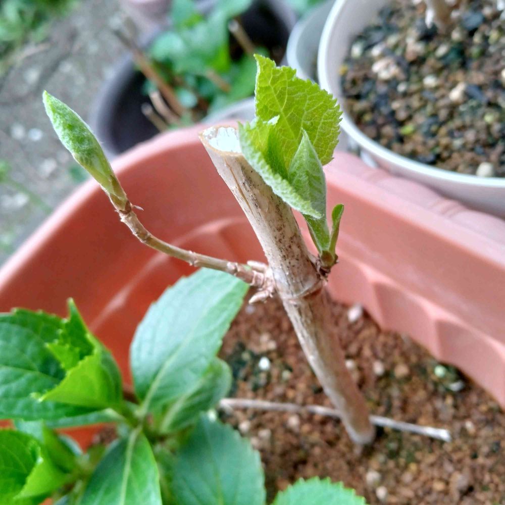 紫陽花アナベルの新芽が