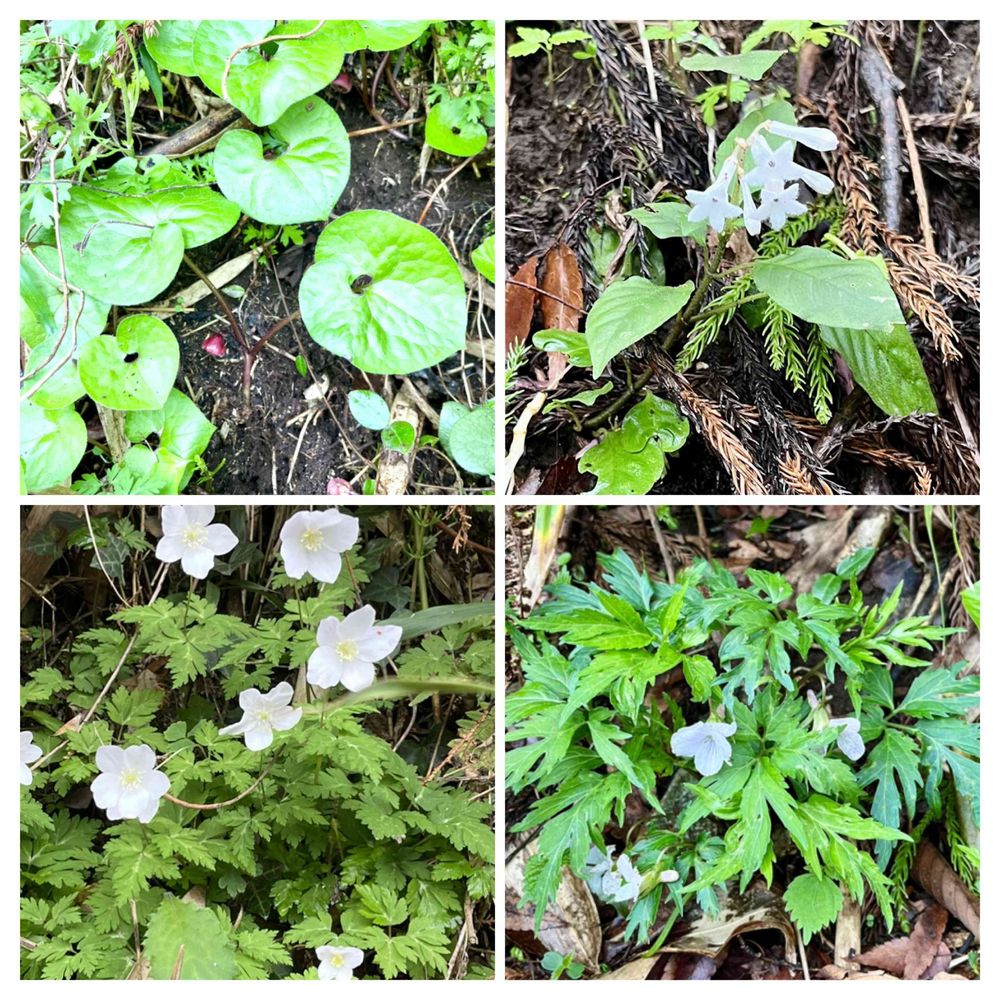 フタバアオイ、サツマイナモリ、イチリンソウ、エイザンスミレの自生
