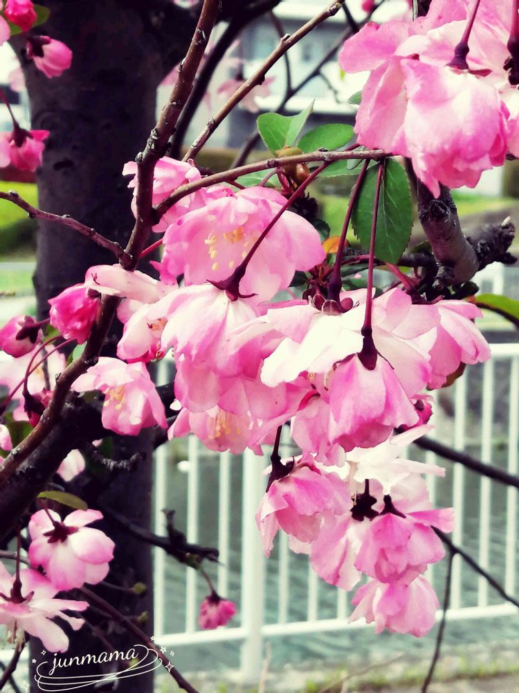 中国人観光客らしき二人のお嬢さんがこのお花と一緒に写真を撮っていましたけど「お嬢さん方 その木は桜でなくてハナカイドウというお花だとお判りでしょうか? あなた方のお国が原産地ですよ」
