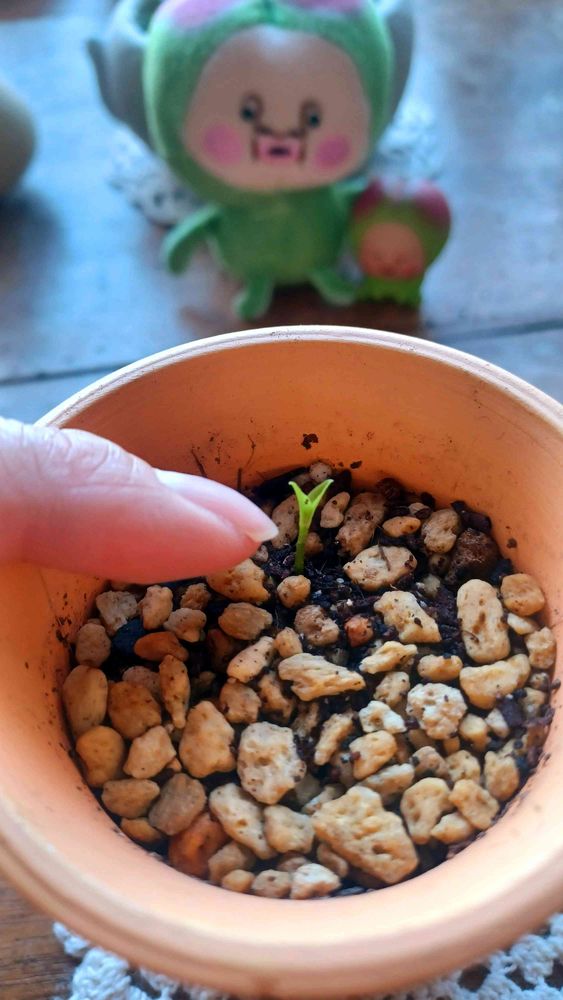 スーパーで購入した高知県産のレモンから取り出した種、1粒。