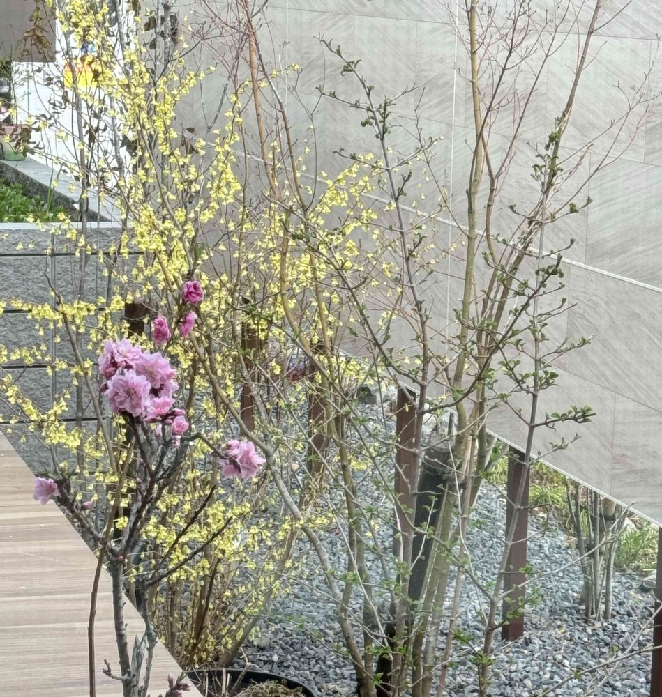 庭にううた今年2年目になる ヒューがミズキと桃の花が 開花です!