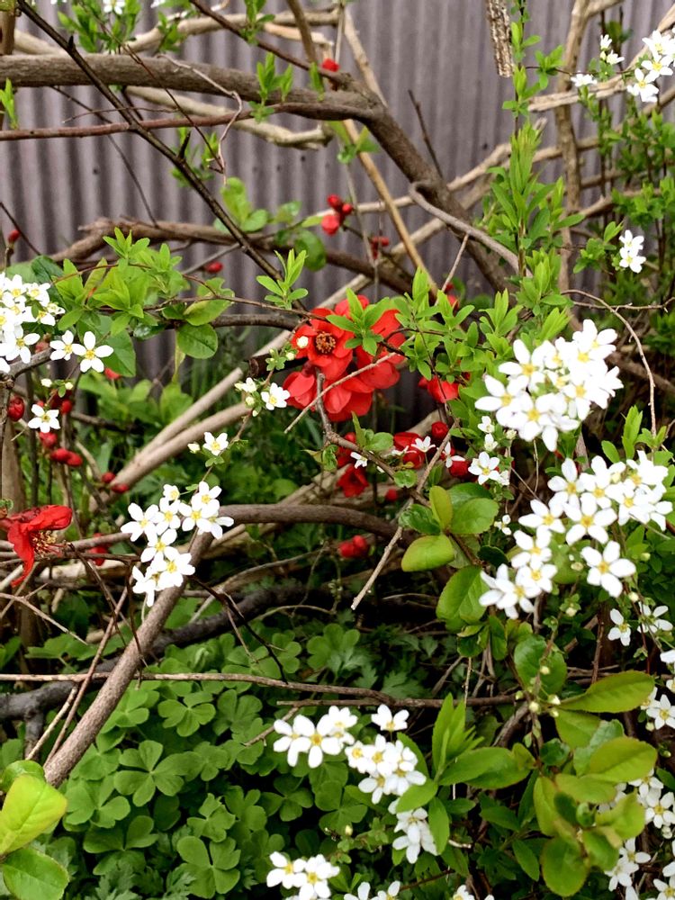 ボケの花はもう2週間前に散り、すももの花はほぼ散ってしまいました。同じに咲くのはユキヤナギ。やはり少し寒いところは、みんないっぺんに咲きますね。