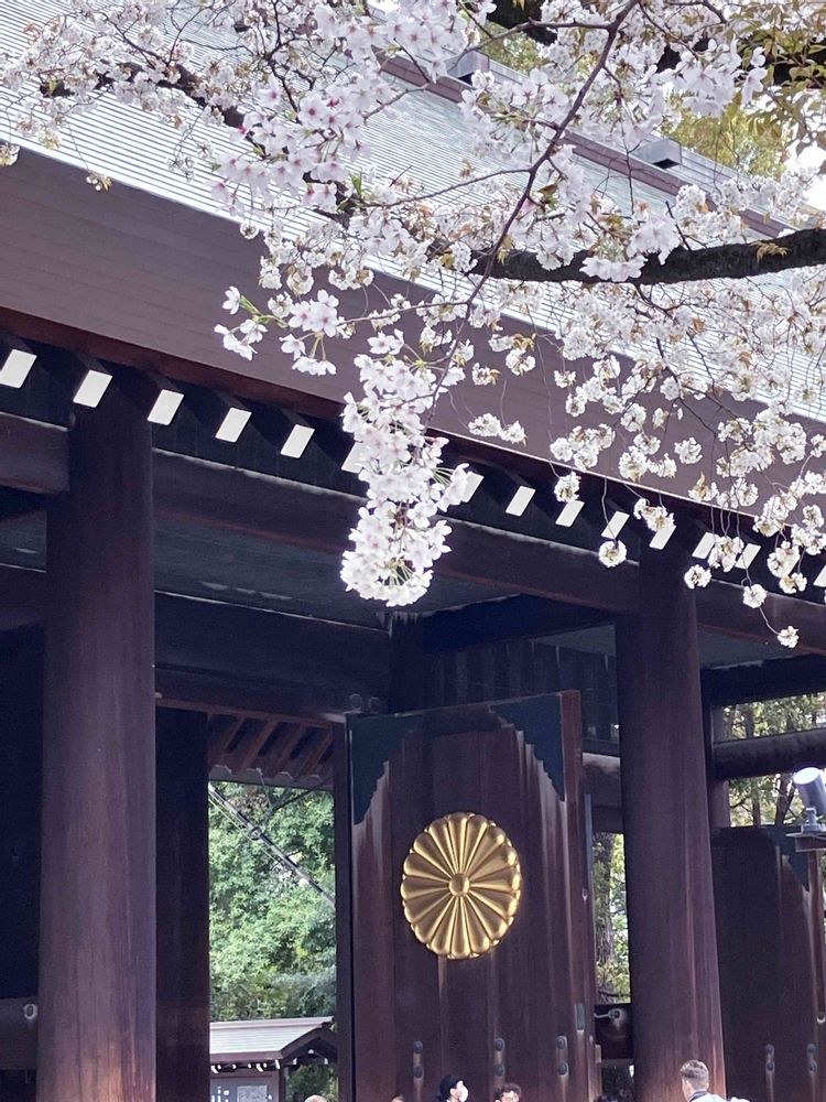 靖国神社の重々しい御門に、淡い色の染井吉野が多くの散って行った若者に花を手向けているように思いました。