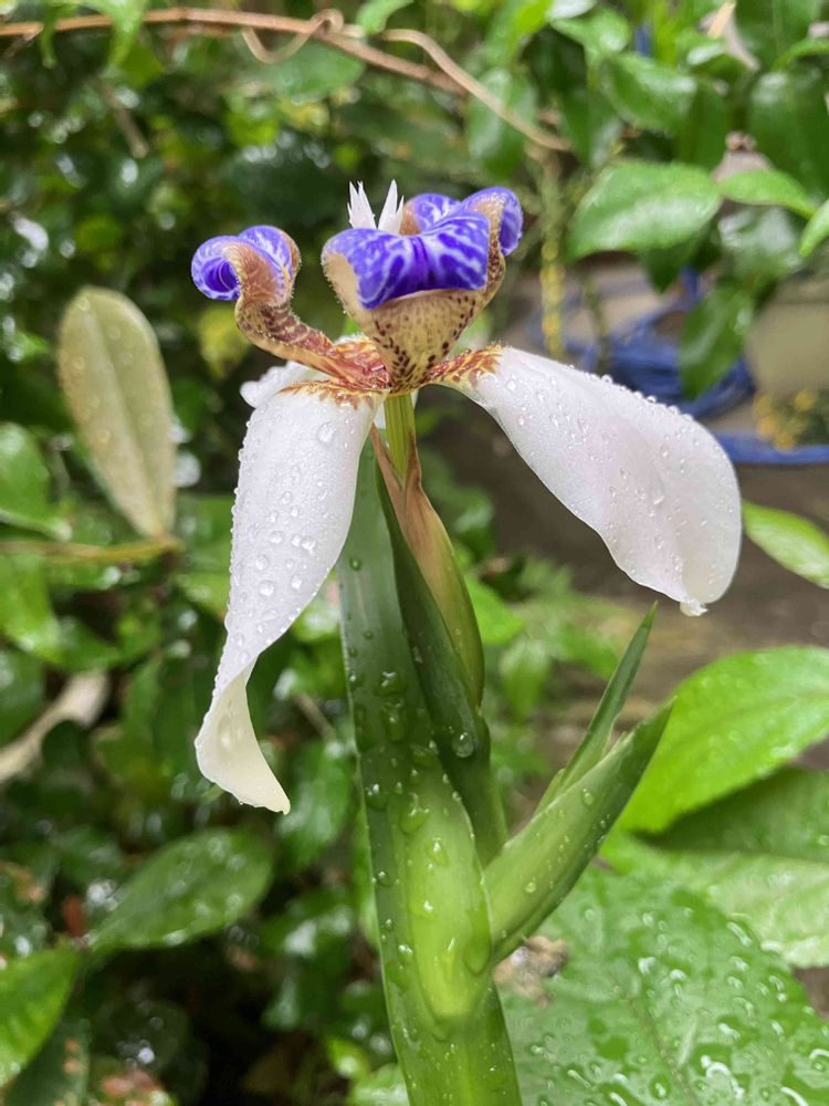 早朝 雨の中☂️アメリカシャガ咲いていました💜花と蕾