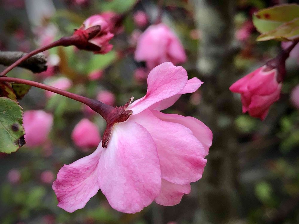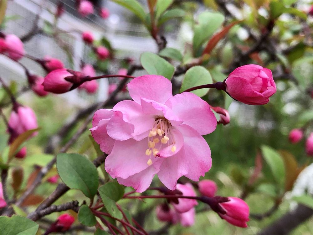 桜の木は成長が早いけど、ハナカイドウはあんまり背が高くならないのかな。近所の木は2メートル位。お花を見るのにちようどいいわ😍