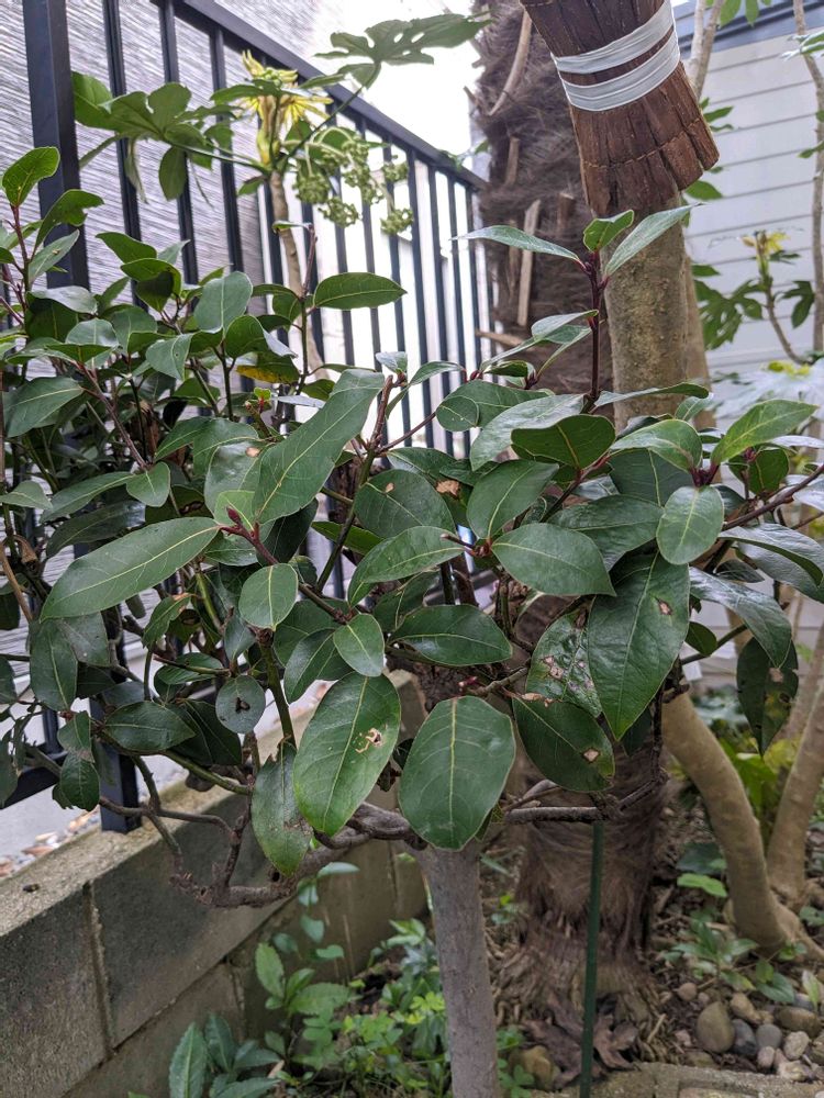 裏庭で元気にずっとずっと見守っている老木低木月桂樹です〜💪👀💖ガンバレ‼