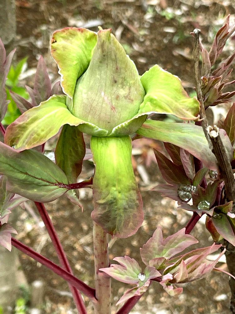 赤々した牡丹の新芽🌱新鮮ネ♬