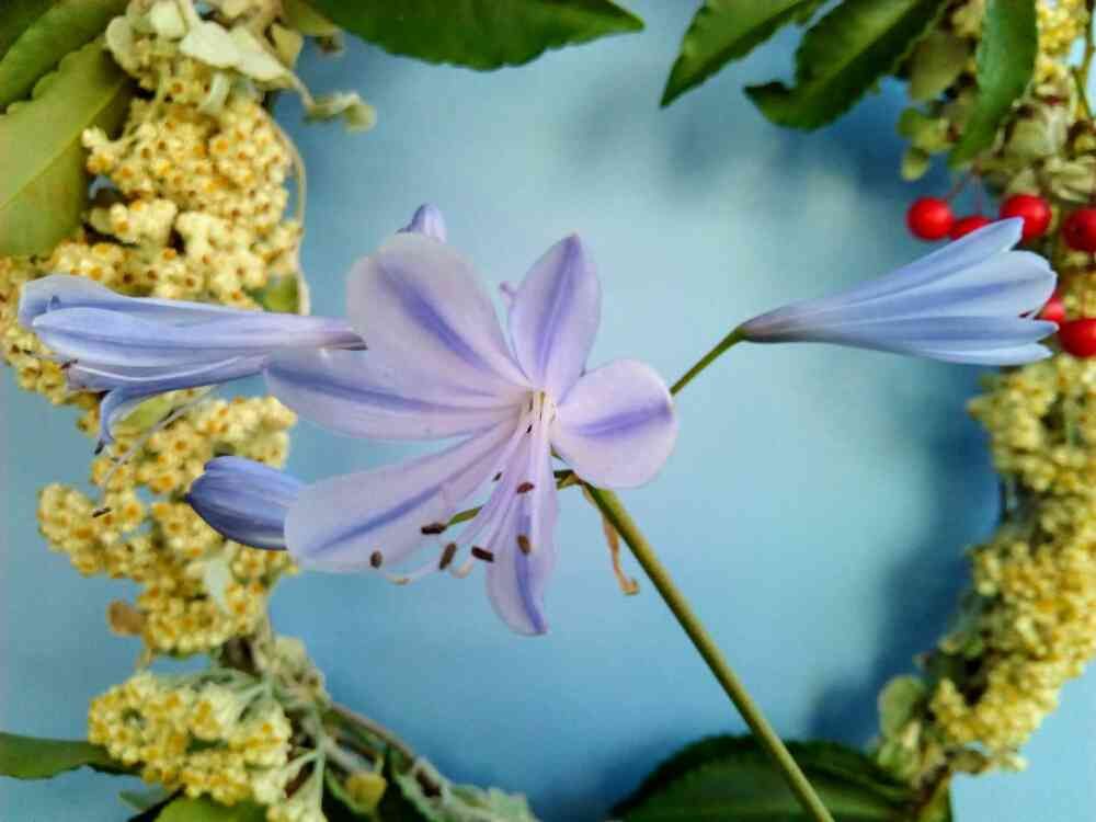 クレープさんの小さな庭,ミニアガパンサス,ヘリクリサムリースの投稿画像