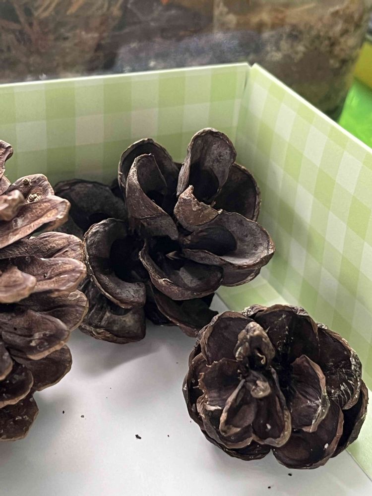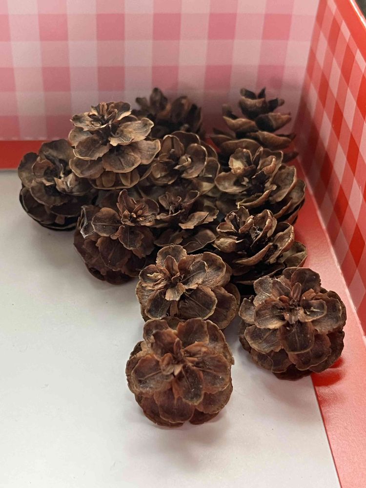 いとこの子供と一緒にお散歩をして拾って来た松ぼっくりや、お出かけをして拾って来た松ぼっくりを集めました😆👍🌲 まだ箱に空きがあるので、また拾って来たら入れようと思います😆👍