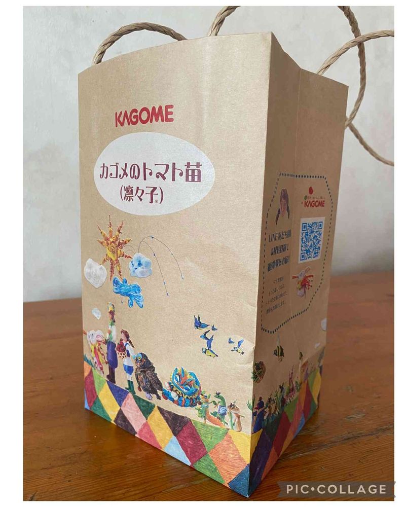 友人が「トマト苗いる?」と言って届けてくれたのは、こんな可愛らしい紙袋に入ったKAGOMEの中玉トマト凛々子でした🫶