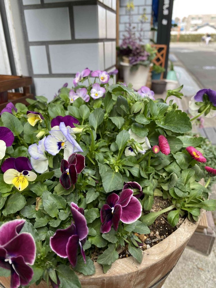 ごちゃ混ぜパンジービオラ 少しずつ咲いてきました。赤のフリジン、ダメかと思ったが少し咲いてきた😗