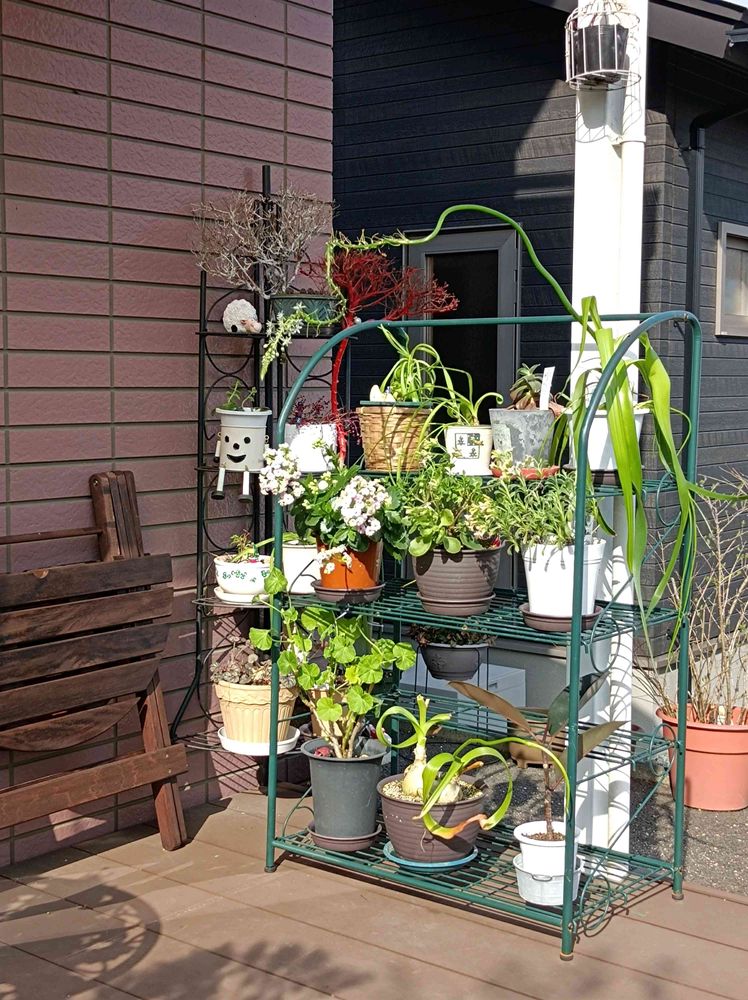 緑のスチールラックは冬用のビニールカバー付きですので冬は家の中でカバーを掛けて置いてます。