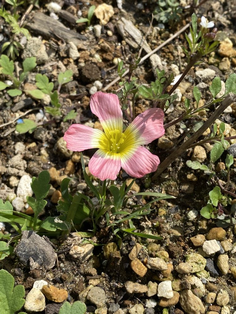 無計画に植えられたため、群がるオキザリスを掻き分けて咲いた子たち。