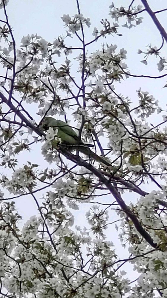 サクラの花を啄んでいるワカケホンセイインコが入れ替わり立ち替わり来ていましたよ🐦
