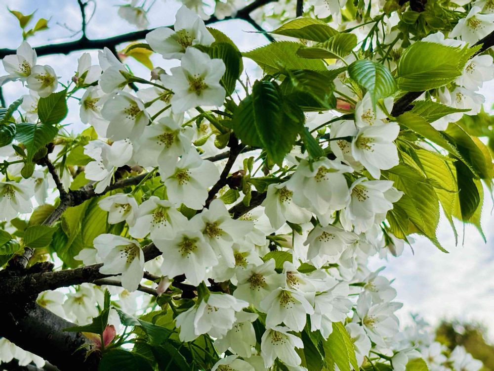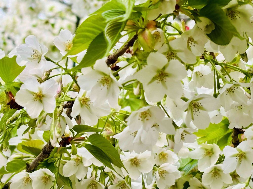 新緑のグリーンの葉っぱも出てるのでとても爽やかな感じの桜です