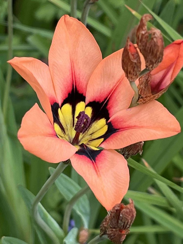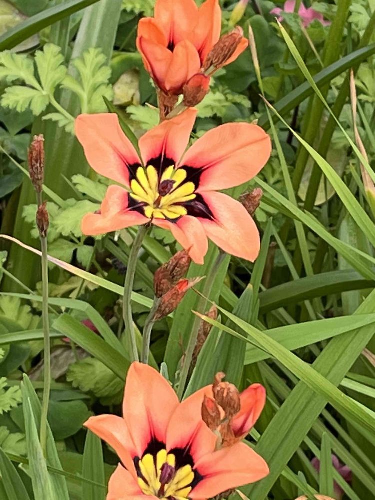 毎年、この時期になると花壇で咲く花スパラキシスです♪