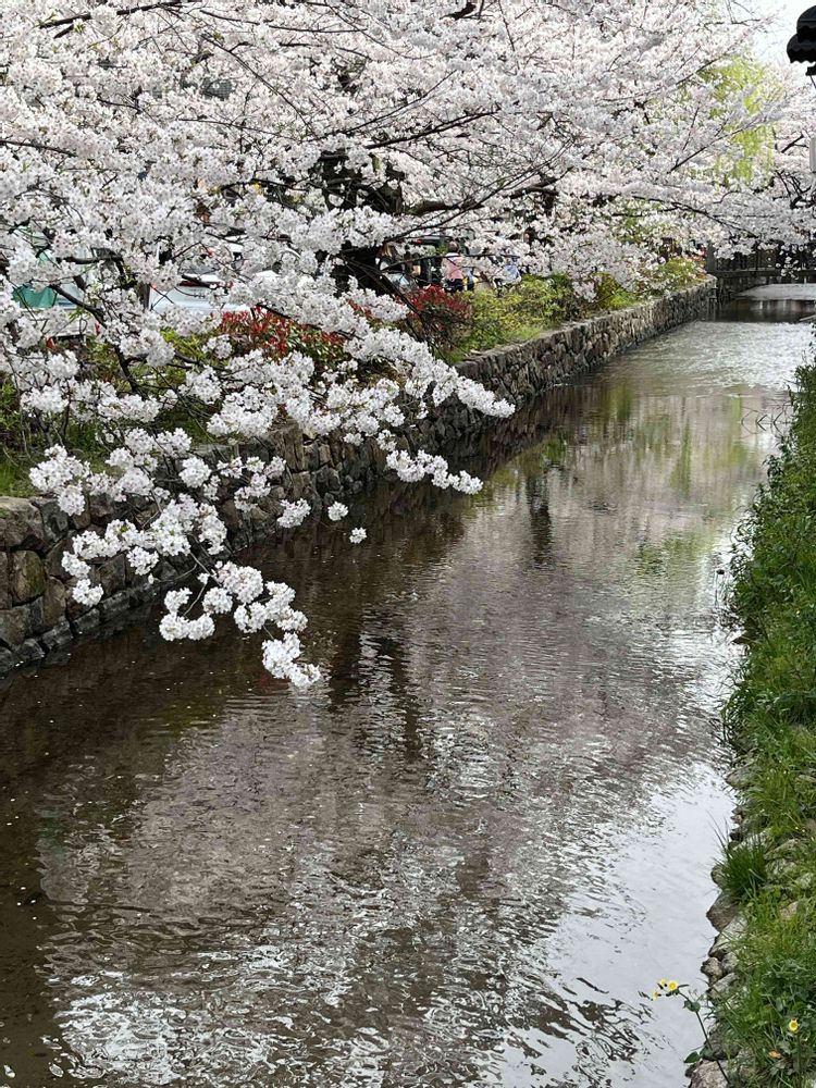 京都一番の繁華街の中を静かに流れる高瀬川ですが、サクラ🌸並木が満開で、ものすごい人出でした😊