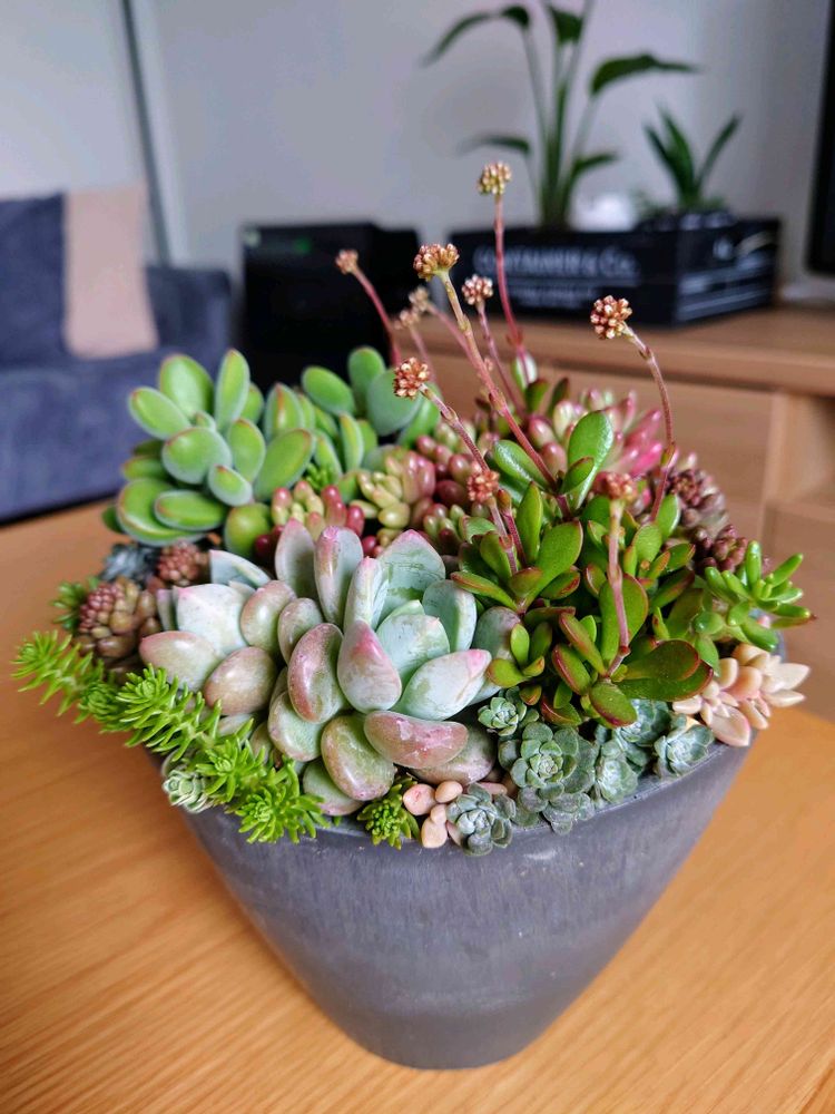 多肉植物たちが青々としてきて、遊びに来てくれた友達が「あれ?!こんなんやったっけ?!」とびっくりしていました😆