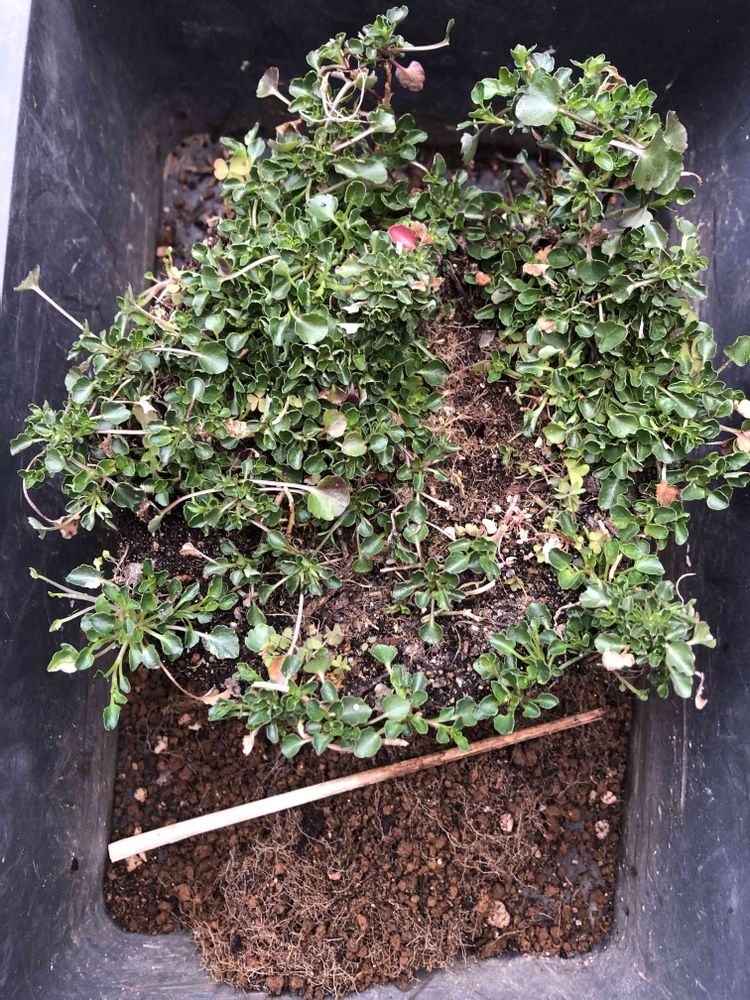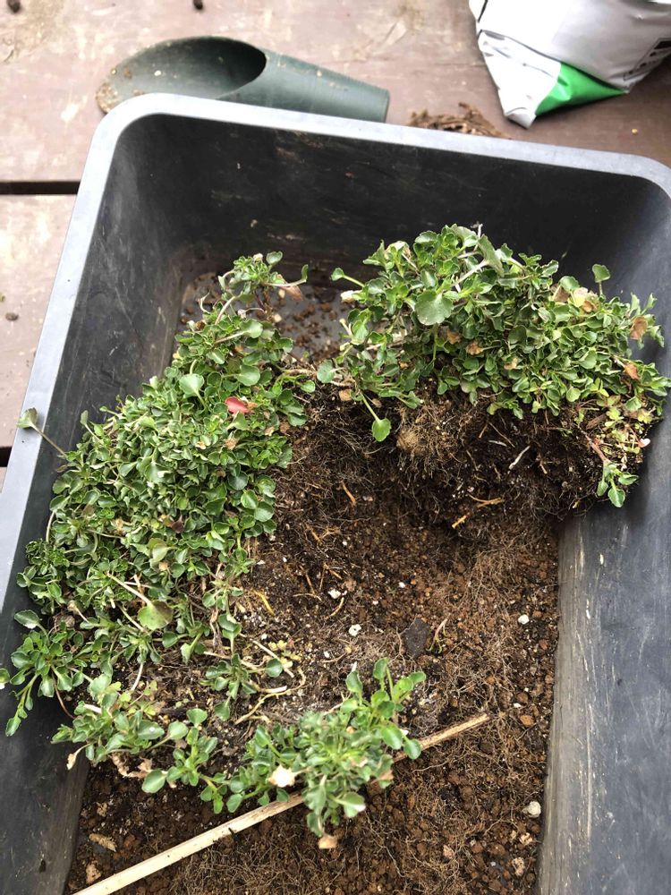カンパニュラメリーベル、毎年イマイチもりもりにならないし、冬の寒さで少し枯れてしまったので株分けすることにしました。ちょうど切れ目みたいになってたし。